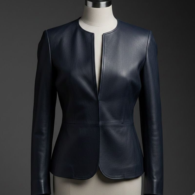 يأتي بلزر الجلد الطبيعي خامة نبه باللون الكحلي ليعكس مفهوم الأناقة العملية التي تبحث عنها المرأة العصرية. تم تصنيع هذا البلزر باستخدام جلد طبيعي نبه عالي الجودة، يتميز بملمس ناعم ومظهر أنيق يجمع بين الفخامة والراحة في آنٍ واحد. هذه الخامة تعد من أفضل أنواع الجلود المستخدمة في الملابس، نظرًا لمتانتها وقدرتها على الاحتفاظ بمظهرها الجذاب مع مرور الوقت.