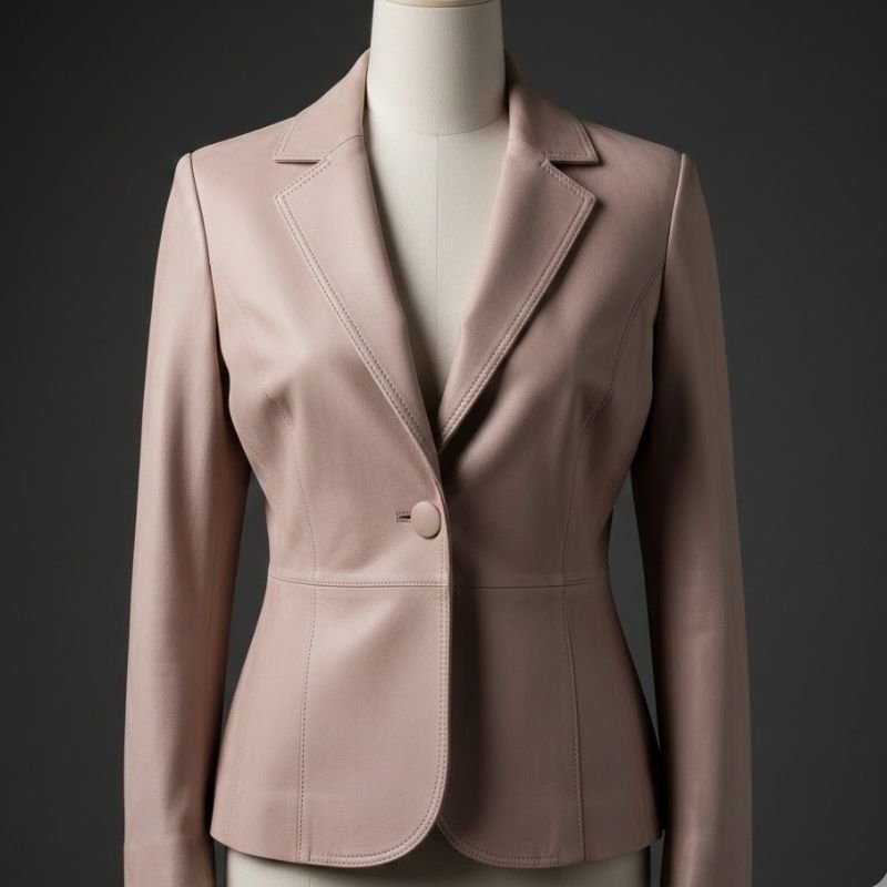 يأتي بلزر الجلد الطبيعي خامة نبه باللون المستيك ليجسد مفهوم الأناقة الهادئة التي تبحث عنها المرأة العصرية. تم تصنيع هذا البلزر باستخدام جلد طبيعي نبه عالي الجودة، وهو من الخامات المعروفة بملمسها الناعم ومظهرها الراقي الذي يجمع بين الفخامة والبساطة في آنٍ واحد.