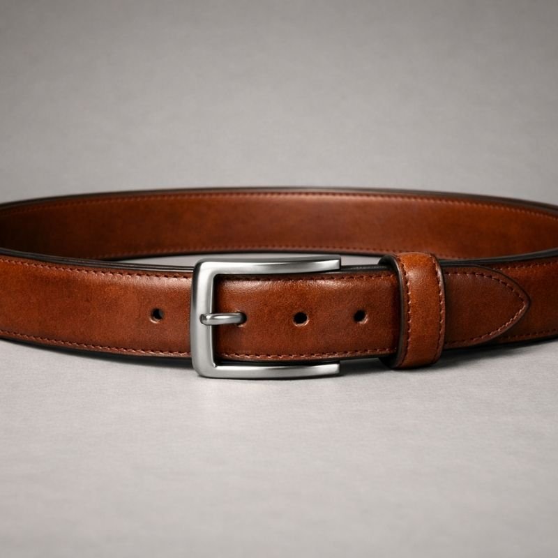 الجلد الطبيعي المستخدم يمنح ملمسًا ناعمًا وفخمًا، ويستمر لسنوات دون فقدان شكله أو جودته. الإبزيم المعدني المتين يضمن تثبيت الحزام بشكل آمن ويضيف لمسة احترافية للقطعة. يمكن ضبط الحزام بسهولة ليتناسب مع مختلف الأحجام، مما يمنح مرتديه راحة كاملة طوال اليوم.